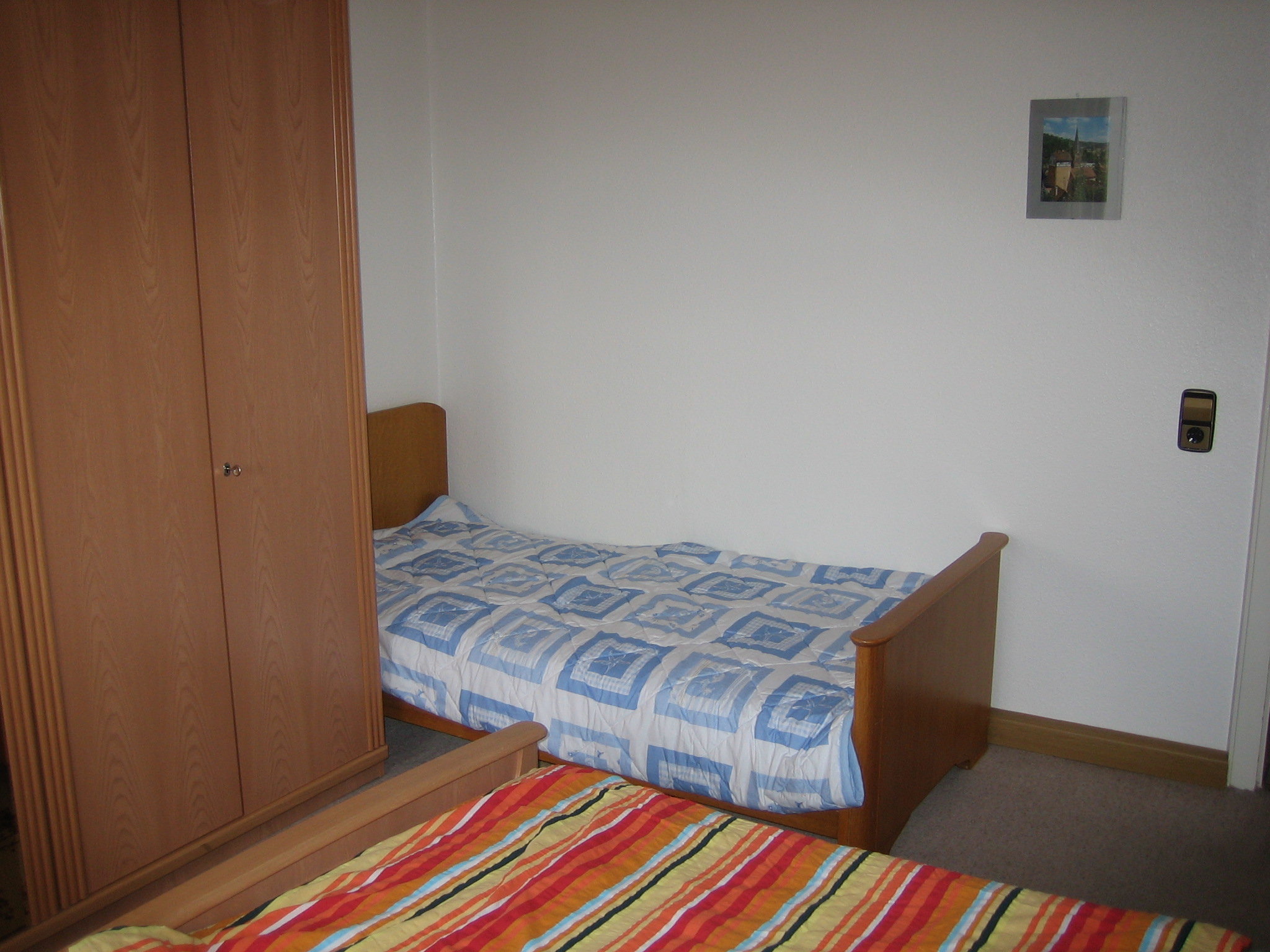 Schlafzimmer mit großem Schrank, Doppelbett und einem Einzelbett